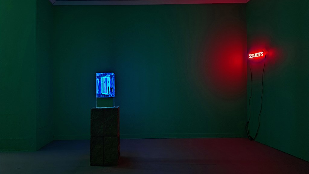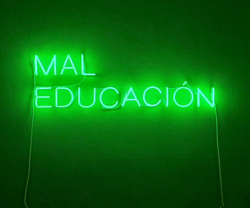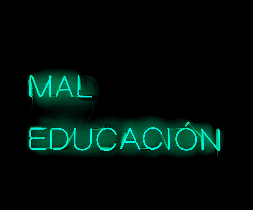 Anne Katrine Senstad is a Norwegian interdisciplinary artist based between New York and Oslo. Her practice includes installation art, spatial light sculpture and site specificity, photography, video and film, and text based art, with a focus on the phenomena of perception and the cognitive system in response to the properties of light, sound, and color. She is concerned with sensorial aesthetics and ethics – the transformative and transcendental ideas of art and philosophical practice. Mal Educación is the second solo exhibition by Norwegian artist Anne Katrine Senstad at Good Children Gallery as part of her ongoing research project, Capitalism in the Public Realm. The exhibition explores the intersection between light and text to address critical subjects of ethics, agency, citizenry, and allegory.