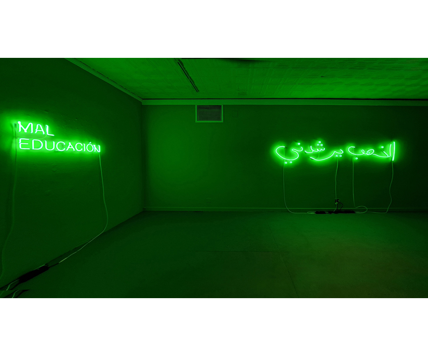 Mal Educación is the second solo exhibition by Norwegian artist Anne Katrine Senstad at Good Children Gallery and is part of her ongoing research project Capitalism in the Public Realm. A title that sets the stage for numerous question marks, Mal Educación ushers in a focus on the relationship between light and text as method for the examination of ethics, citizenry, agency and allegory. With this, Senstad transforms Good Children Gallery into a luminous hall of letters, presenting critical text based works in Spanish, Arabic, Chinese, English, German and Russian through word play and sublime critique of capitalism and our contemporary crises of the human condition.