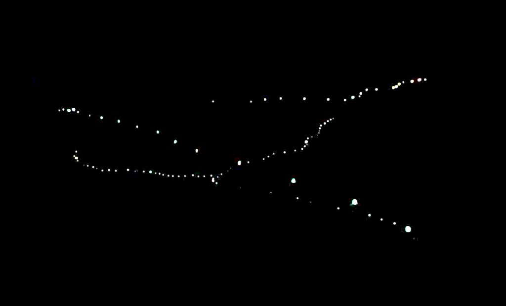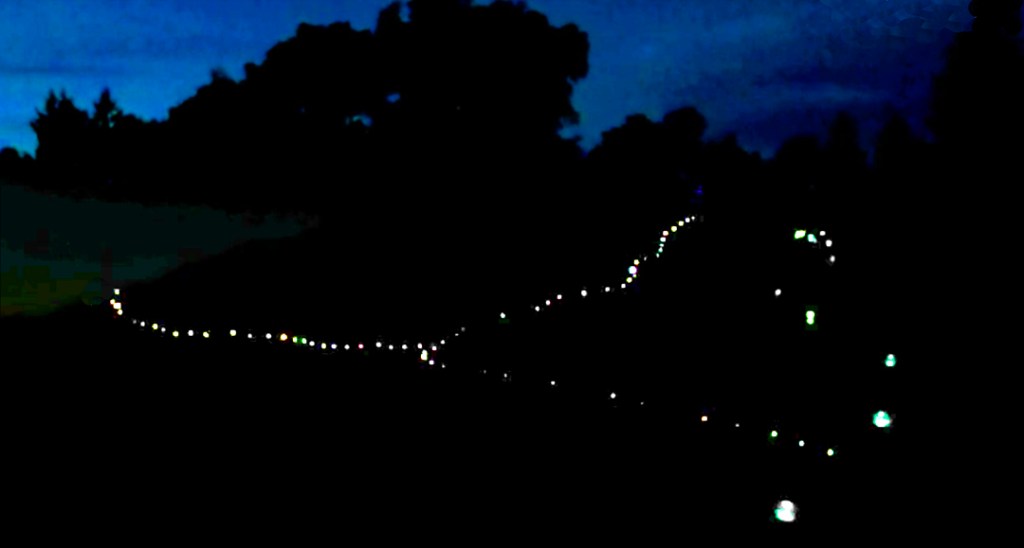 THE RIVER OF MIGRATION, consists of 72 solar power run lights, that are placed on a mountainside in long consecutive lines echoing migratory movement while creating a light contour of the landscape. The representational light and land piece creates a spatially drawn line and a geographical mapping of the Californian landscape, and serves as a gestural, lyrical and critical comment to migration policies, border wall policies and raises awareness to the rise of all aspects of human trafficking as business, as well as the financial structures of climate refugees, war refugees, political refugees and gender refugees and who capitalizes on it. With the intention of light creating a memorial, Senstad illuminates issues of migration with the symbolic river as a human river of light of the nameless. The lights are placed as a gestural memorial with intention of honoring the souls who died in the migratory process, in this case, to those who failed to cross the US-Mexican boarder, or were murdered in the process. This permanent installation brings attention to the US boarder politics, the issues and intentions of the boarder wall towards Mexico, the fact that California was once Mexican and also native American, the violent deaths of people attempting to cross the boarder, as in this case, the 72 light represent a specific case of the murder of 72 individuals who in 2010 resisted being used as drug traffickers by the cartel, forced into a no win situation, yet is a symbol of numerous fallen in the process due to politics and war throughout time. As the solar panel lights are lit from dusk till dawn, when most people cross the boarders illegally, the lights illustrate the very nature of migratory action. The mapped out line of lights down a hillside,talks about the nature of migration, how bodies of peoples crossing long distances by land, will naturally walk in a sequential manner according to age, physical health, group importance and their task within the group.