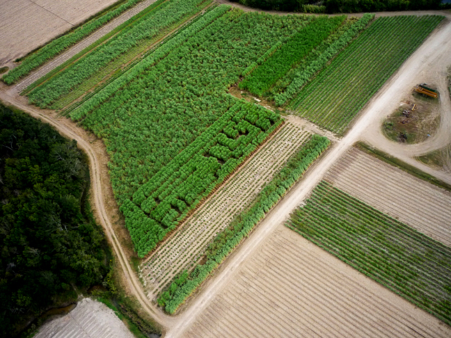 The Sugarcane Labyrinth is a 1,4-acre (5880 sq meter) agricultural land art work located on a farm in Theriot, Louisiana. The Sugarcane Labyrinth was created March 2009 until it was harvested for Ethanol production December 2009. Amongst the research that went into the project and the ideas surrounding the creation of the agricultural land art work, a chief focus was to demonstrate agricultural sustainability in order to create awareness about farming culture as a vehicle to local rural and urban social sustainability, as well as the idea of introducing agriculture back into the urban environmental infrastructure, to build up an agricultural awareness as a way of a natural resource in times of economic failure, and re building local urban environmental support after natural environmental destruction such as hurricanes and earthquakes. The Labyrinth itself is a literary and mythical symbol of “the Path”, as well as symbolizing constructions of interweaving realities. It is traced back to Greek mythology and religion, as “The Path to enlightenment”, the path of the task, or the path through life. It is also a game and a landscaped architectural construction for people to interact with, wander through – the labyrinth creates aesthetic value. The experience of finding one’s way within the Sugarcane Labyrinth, with 12-14 foot tall Sugarcane and the walls being 6 foot thick, will be experienced as bewildering and overpowering, recreating the notion of loss of direction and confusion, it is a cognitive and aesthetic monumental art work. The sensorial experiences, the effects on the human body and brain, are exalted by an unusually high intake of oxygen from the Sugarcane.