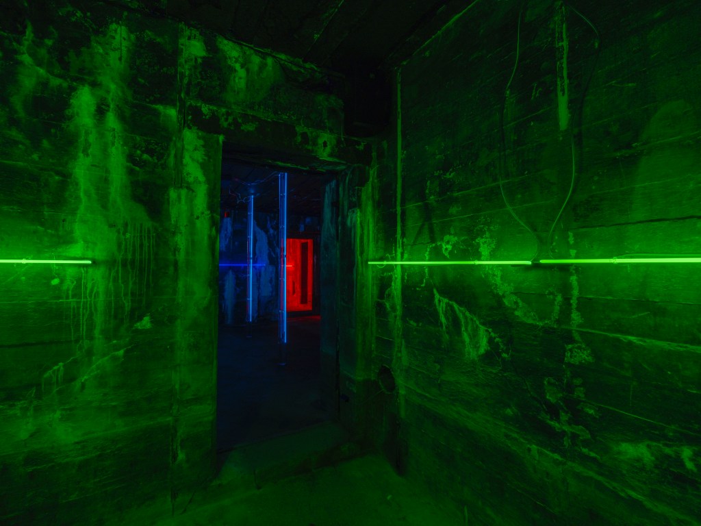 POIESIS is a monumental neon sculpture installation and adjoining light and sound installation set in two repurposed former WW2 bunkers on the Atlantic coast of Denmark, consisting of the artworks Elements VII and Cubiculum Red + Blue by Anne Katrine Senstad with spatial sound by acclaimed composer JG Thirlwell, 2023.