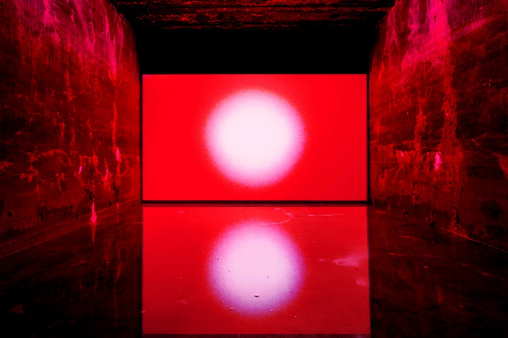 The video installation Cubiculum Red + Blue, focuses on dualities between the enclosed, submerged spatial properties of the bunker and the spectator’s interior and cognitive landscape. The hypnotic, seemingly monochromatic projections reflected in pools of water evoke a subtle connection to ancient cubiculums and the idea of rest at the threshold of life and death, consciousness, and liberation. An enveloping spatial sound composition by acclaimed composer JG Thirlwell creates floating spatial sensations of sonic waves between infinite vastness and molecular particles, harnessing the emotive. Cubiculum Red + Blue invites the audience to contemplate the balance between what is enclosed and what is released within these chambers.