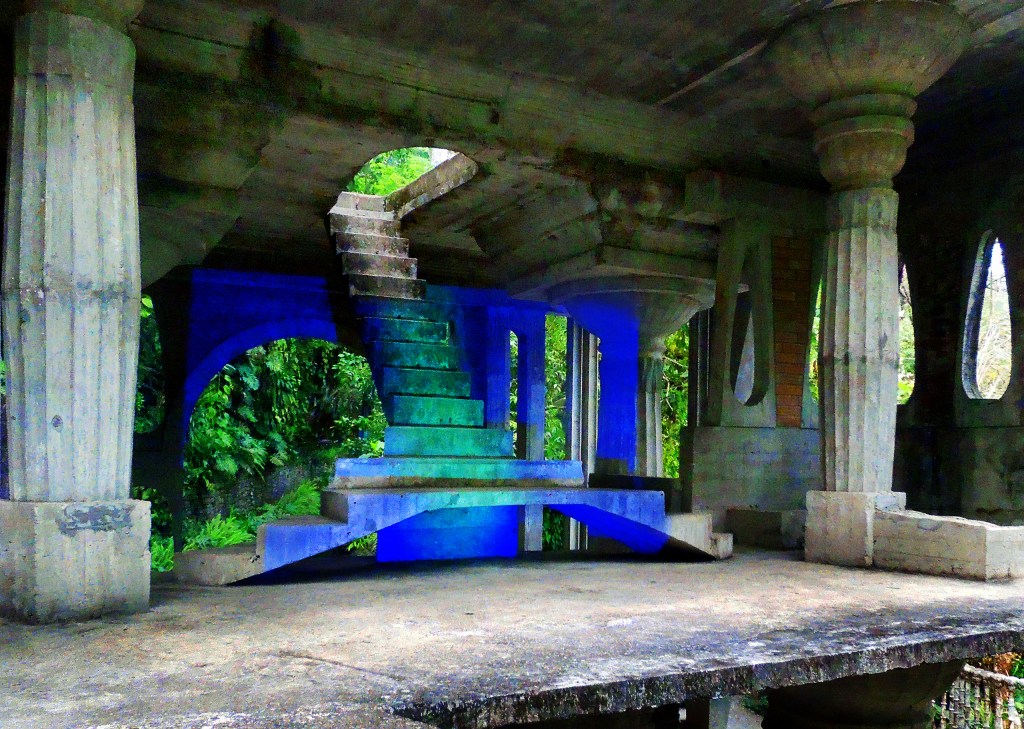 About The Edward James Sculpture Garden: The land is located near the town of Xilitla, in the Huasteca Potosina region of Mexico. Edward Frank Willis James, was an eccentric British poet, artist and patron of the surrealist movement. James created an architectural fantasy land in the jungles of Mexico, placed somewhere between Shangri-La and a visionary pre-Brutalist city, the untamed, wild and the artificial merges these multiple impossible worlds into a physical, metaphoric universe.