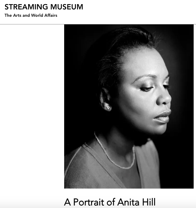 Anne Katrine Senstad – A Portrait of Anita Hill, Streaming Museum, 2020: – “Anne Katrine Senstad is a Norwegian artist living between New York and Oslo since the 1990s, who has a highly acclaimed international reputation for her pioneering multi-disciplinary installations of light, video, sculpture and sound, photography, and land art. However, it is little known that in the 1990s Senstad was a portrait photographer on assignment for the New York Times Magazine and other leading publications, to photograph high visibility individuals. Senstad’s portrait sittings often took place in her Chelsea loft studio, recorded on film with a 4x 5 large format camera. Her photographs of Anita Hill captured the spirit of the remarkable woman who had become a national figure in 1991 following her testimony for the Supreme Court nomination hearing for Clarence Thomas about sexual harassment when she worked in his law office. In a recent interview Professor Hill talked about the continuing public crisis on gender violence, racism, equality and accountability, and called on all political candidates to come up with plans to deal with it as a public health crisis. “I tend to be a hopeful person,” she said.”