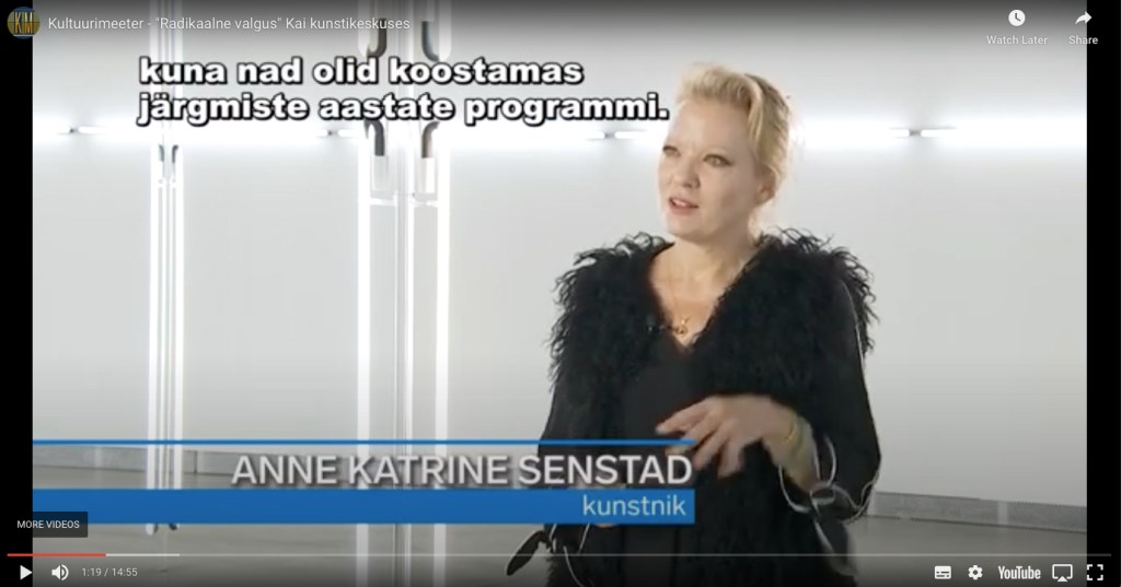 Anne Katrine Senstad; Radical Light: Kultuurimeeter Art and Culture Magazine – Tallin, Estonia, 2020. Watch the interview here (English with Estonian subtitles, 15 min).
