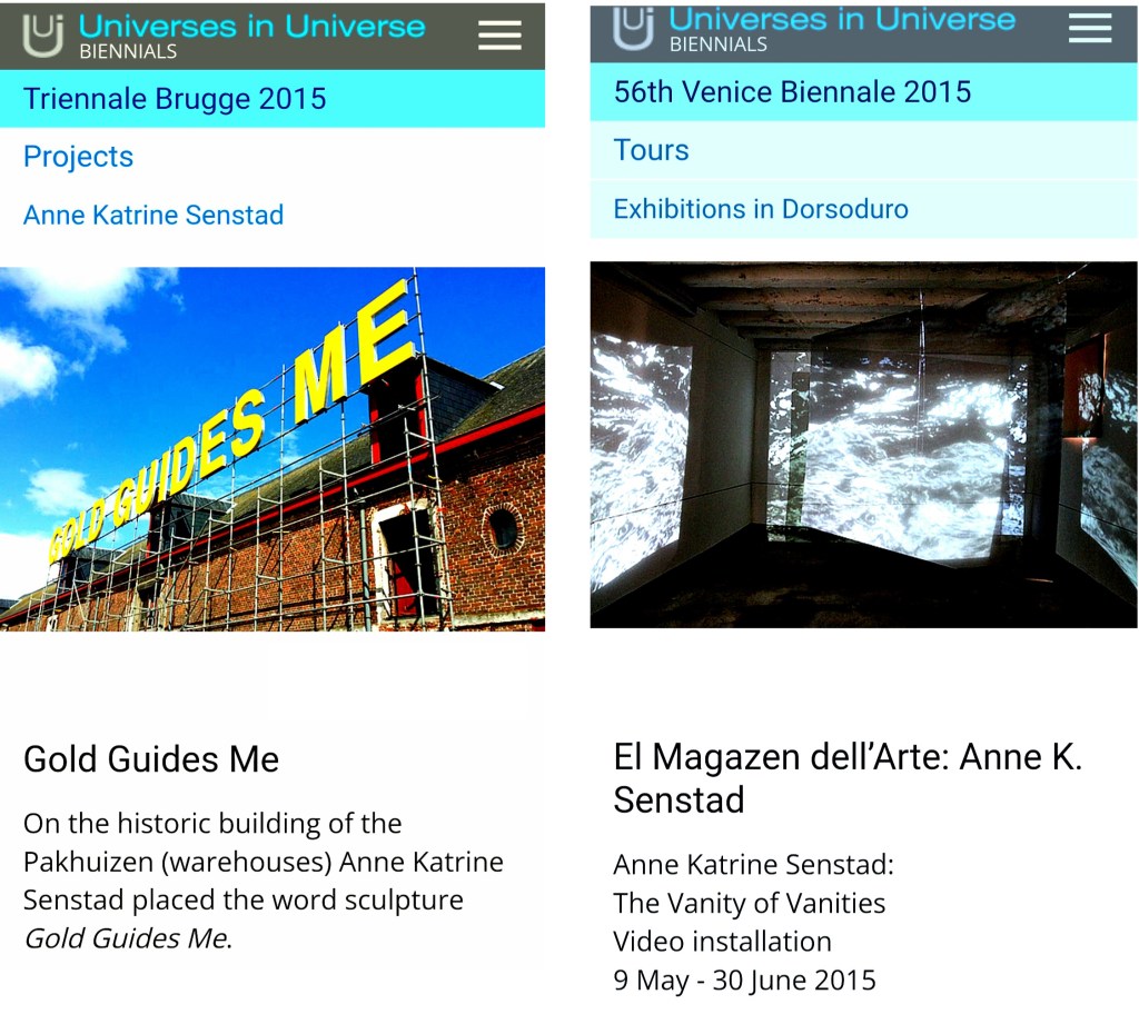 Anne Katrine Senstad: Light Writes Always in Plural – Berlin Artlink, by Sarah Crown, 2014 .- “The media that Anne Katrine Senstad uses to express her ideas range from neon installations to projections, from photographic printing to site-specific land art. Senstad inserts light and luminous bodies in everyday spaces, whether exterior or interior, inhabited or not. And these physical places often serve as messengers from a world in which human emotions and existence are reduced to a minimum. And it’s precisely the neon work Light Writes Always in Plural which opens the discourse on the artistic production of Senstad. Inspired by the title of Octavio Paz’s essay “Water Writes Always in Plural,” on the art of Marcel Duchamp, the neon work not only emanates its bluish light into all crevices, but it is also a witty play on words and concepts about philosophy and life. Underlying this florescent tube is a careful analysis and critique of our use of language as a means of mass communication.” Read more here