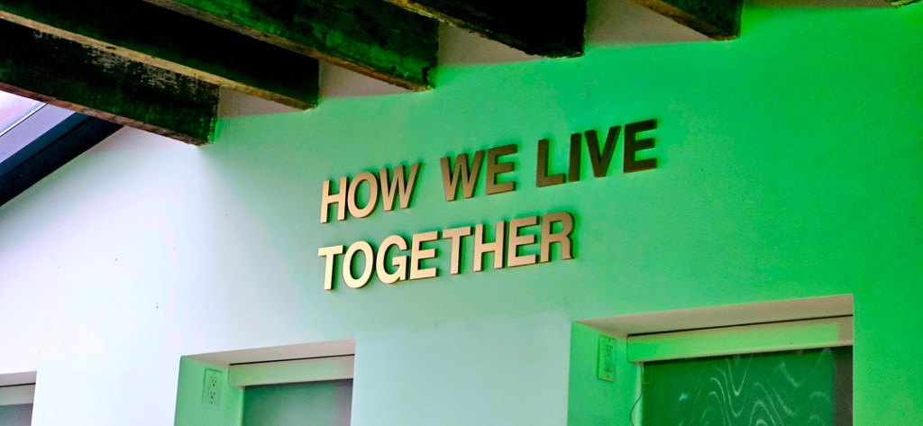 Temporal Communal Spaces: Located on Floor 4, Temporal Spaces invites the public into the former 1900’s photo studio transformed into a performative space and gallery of text based art, video installation work, and a space dedicated to communal events and happenings. Throughout the 4 month project, Temporal Spaces will host an event series inspired by Senstad’s 2016-2021 project HOW WE LIVE TOGETHER, entitled I LIKE MONDAYS, with performances, readings, sound art, and participatory events. The events are by invitation, unless otherwise advertised.