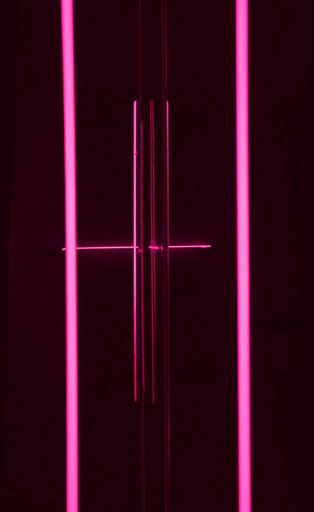 Senstad employs pink as pure subject. Pink light becomes matter, neon and argon gases, glass tubes, color frequencies, and pigment create an ephemeral time-based work. The color pink carries connotations of an anti-color-color, a hybrid existing in botany, or in the Arctic hemisphere as atmospheric electromagnetic fields, a color with innumerable hues made up by a variation of cross-pollinations of white and red, and a dash of cyan, or yellow. It is reminiscent of euphoric realms, and holds a sensation of retreat from time and reality, it inhabits the limitless and borderless.