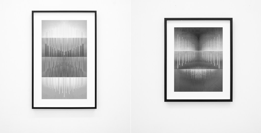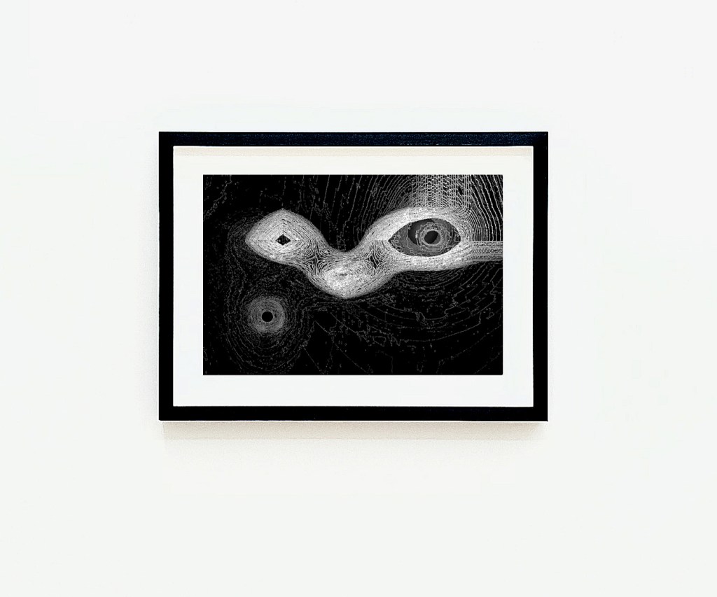 The source material of her new photo-collages, derive from extractions from her video trilogy Chiasm of Lament I, II, III (2025) and her large scale spatial light sculpture work series Elements (2018-), – now further distilled through processes into autonomous bodies of work.